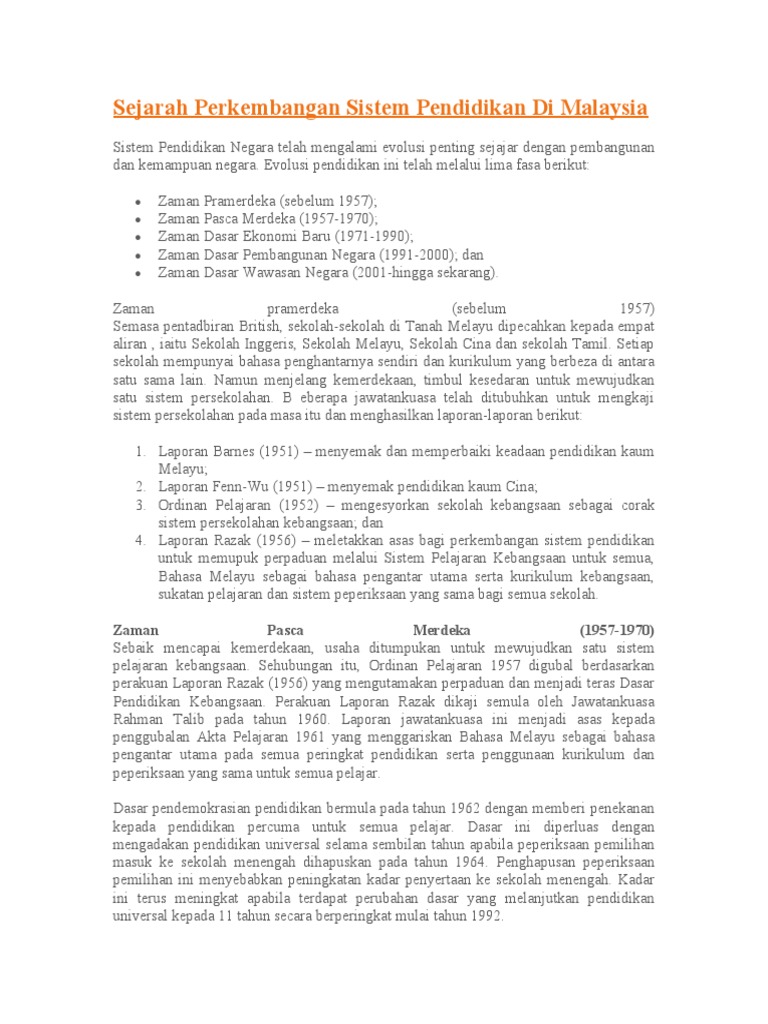 Sejarah Perkembangan Pendidikan Di Malaysia / Angkatan belia islam malaysia, h.. Sistem pendidikan di zaman penjajahan inggeris di tanah melayu telah memberi kesan dalam mewujudkan polarisasi kaum di tanah melayu. Perkembangan pendidikan di malaysia ke arah pembangunan insan dan negara. Pemikiran dan amalan dalam profesion keguruan. Selain aspek pendidikan dan kesihatan, entiti korporat di malaysia seperti tabung haji properties (th properties) dan uda holdings telah bekerjasama di sebalik semua ini, masih banyak masalah yang timbul dalam perkembangan harta wakaf. كمنترين ڤنديديقن) dahulunya dikenali sebagai kementerian pelajaran, ialah sebuah kementerian di malaysia yang bertujuan untuk membangunkan sebuah sistem pendidikan yang berkualiti bertaraf dunia bagi memperkembangkan potensi individu.